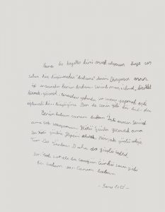 ‘On binlerce meslektaşım işsizlik ve açlıkla mücadele etmektedir. Adil bir yargılama yapılmadan bu mağduriyetlerin önlenmesi mümkün olmayacaktır. Suçu ispatlanmadan ve hakkı verilmeden haksızca görevinden edilmiş tüm meslektaşlarım bir zamanlar sınıflarındaki tüm öğrencilere annelik ve babalık yaparlarken şimdi kendi evlatlarına zor bakıyorlar. Öğretmenlik sıfatını alan her meslektaşlarım iyi bilir ki, öğretmenlik baba ile babalıktır, ana ile analıktır. Ülkemizde yaşanan bunca acı olay yanında bizde payımıza düşeni ihraç edilerek aldık. Ülkemizi sevmenin bedelini ödüyoruz. Öğrencilerimden ayrı olmanın ve derse girememenin dışında hiçbir şeye üzülmüyorum. Her şey düzelir. Asıl olan yaşam ve mücadeledir. Asıl olan umutla geleceğe bakarak gülebilmektir’ diyor.
